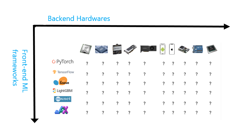 With the increase in ML/DL frameworks and also increase in hardware optimised for different ML use cases, e.g. GPU, TPU, AI accelerators, question arises how do we make a model built with an arbitrary framework run on arbitrary hardware?