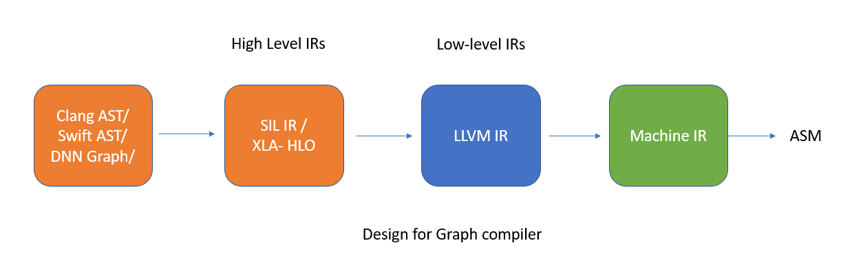 For every new hardware type and device, instead of targeting a new compiler and libraries, we can create a generic representation which bridge frameworks and platforms. Framework developers will no longer have to support every type of hardware and only need to translate the framework code to Intermediate Representation and hardware engineers can support this IR after optimizations for respective hardware. IR lies at the core of how these compilers works, the original code of the model is converted into series of high and low level Intermediate Representations before generating hardware-native code to run your models on a certain platform.