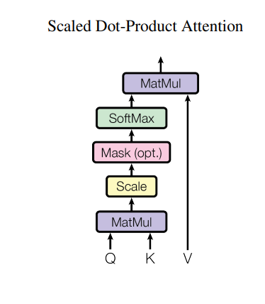 - Each query vector $Q_{i} = s_{i-1}$ is matched against a database of keys to compute a score value. The matching operation is computed as the dot product of the specific query under consideration with each key vector $K_{i}$